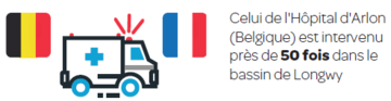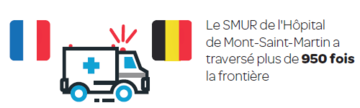 Le SMUR de l’Hôpital de Mont-Saint-Martin met 3 minutes de moins que le SMUR d’Arlon pour intervenir dans 7 communes belges, regroupant plus de 15 000 habitants. Or, en cas d’intervention pour un arrêt cardiaque par exemple, chaque minute perdue équivaut à 10 % de chances de survie en moins et des séquelles irréversibles plus importantes.