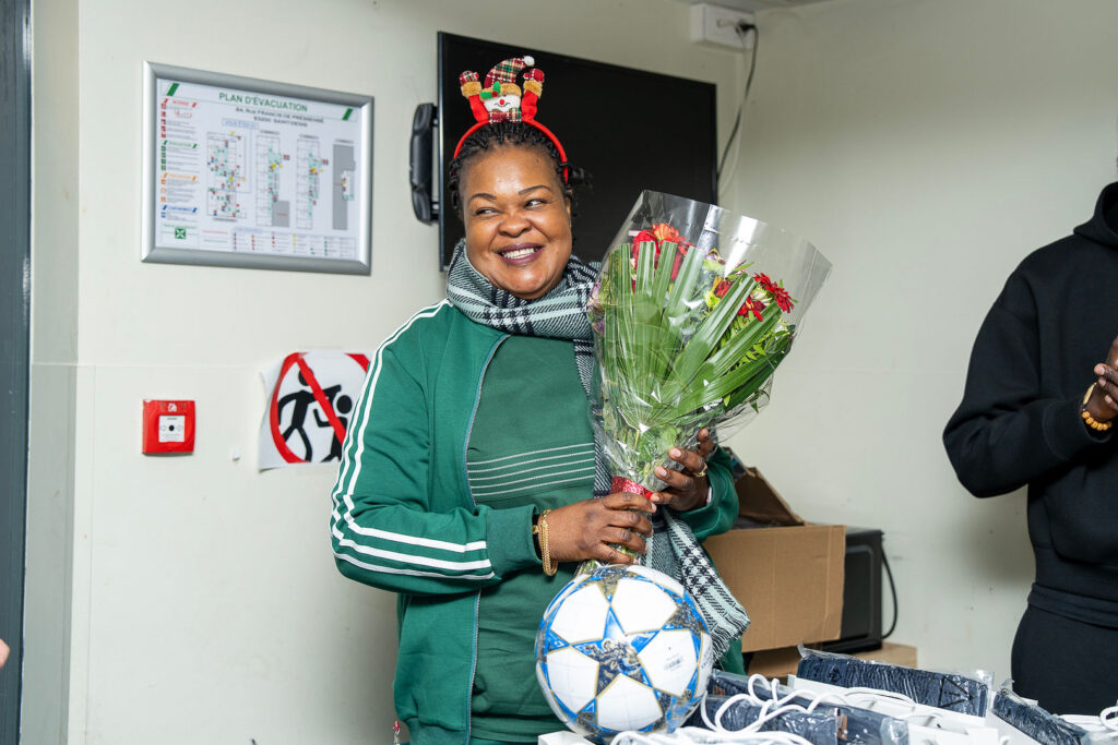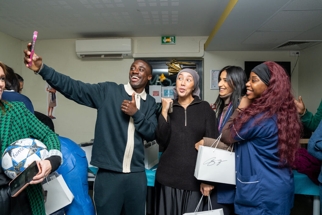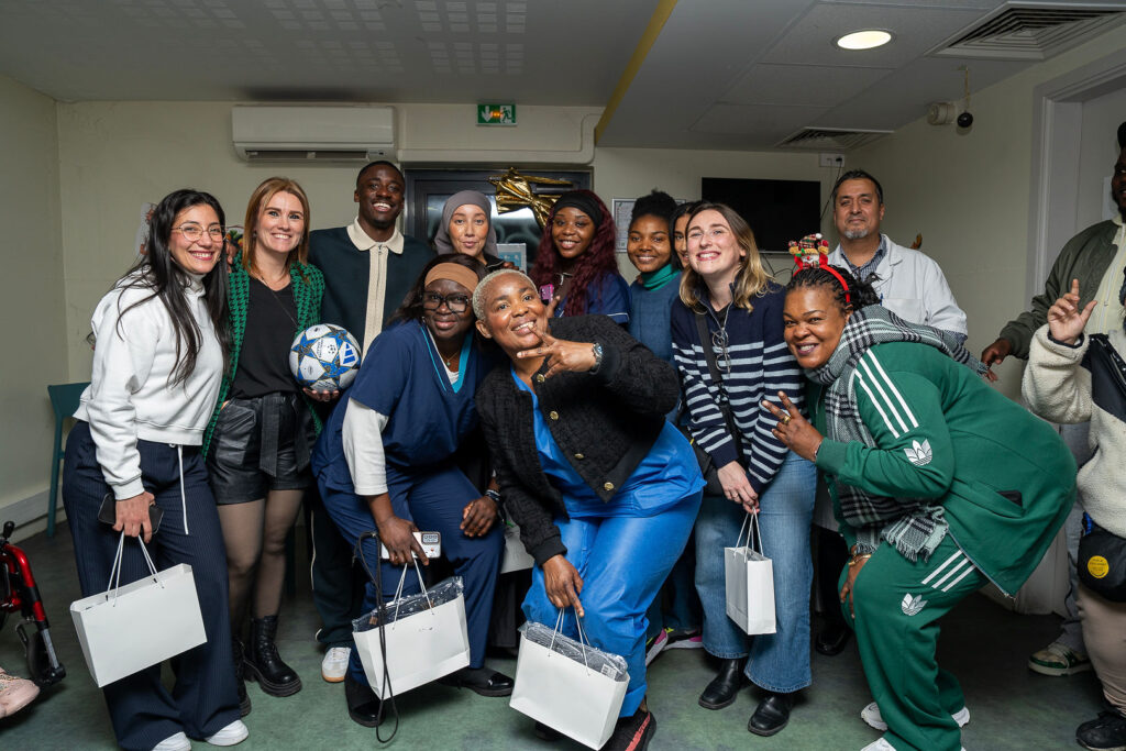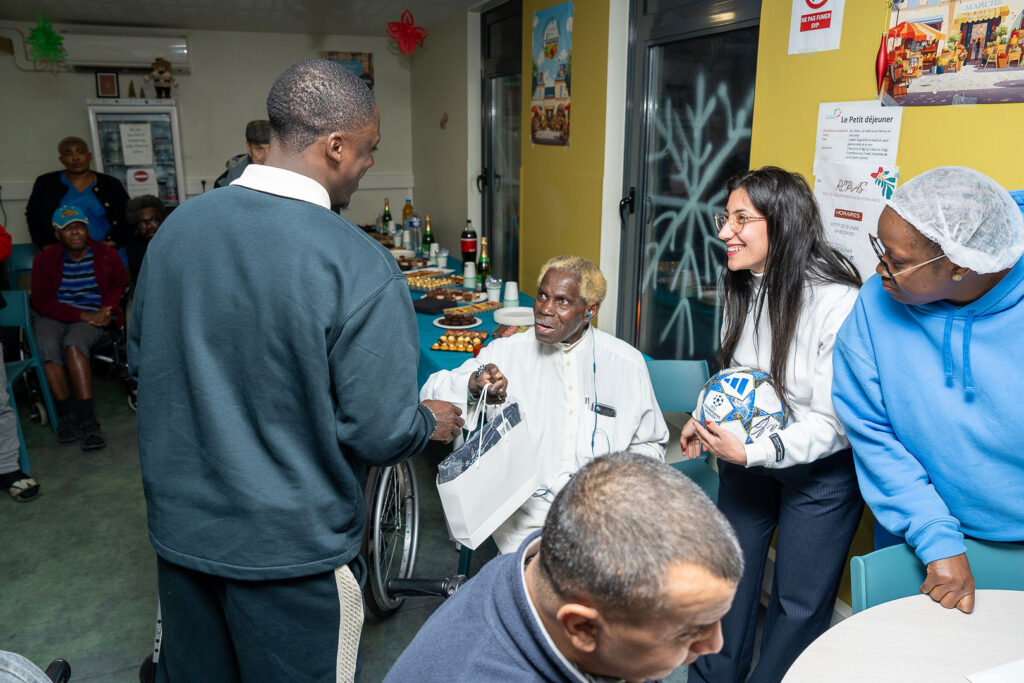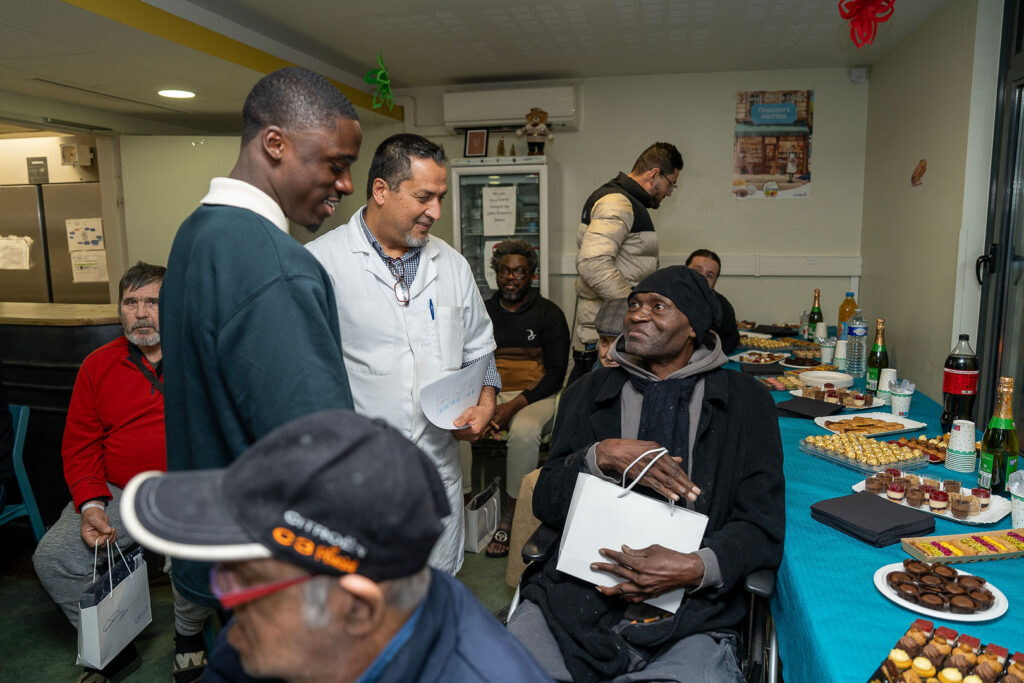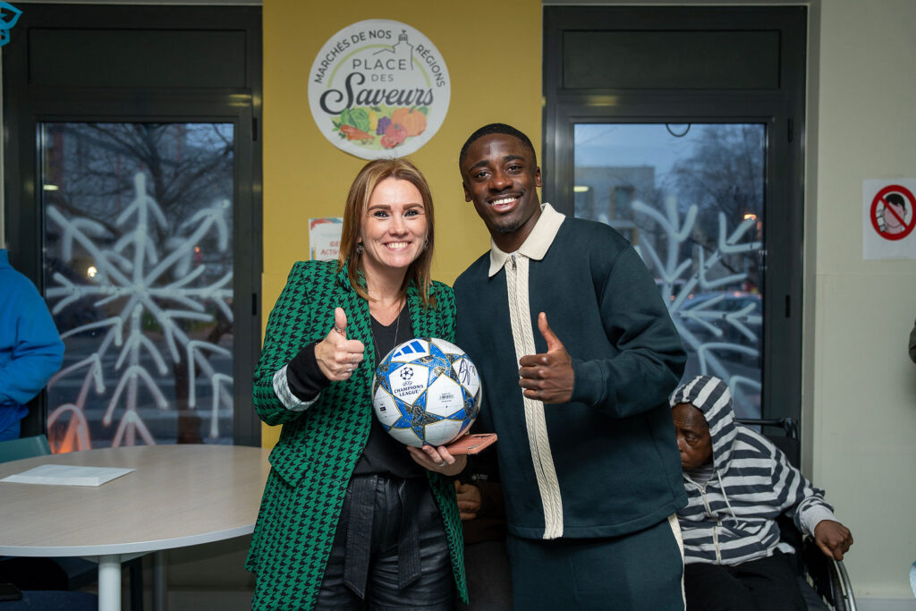 La veille du réveillon de Noël, les établissements Lits d’accueil médicalisés (LAM) et Lits halte soins santé (LHSS) Les Voisins, à Saint-Denis, ont vécu un moment hors du commun. Le 23 décembre, les résident·es et les équipes ont accueilli Saël Kumbedi, joueur professionnel de football formé au Paris Saint-Germain, passé par l’Olympique Lyonnais et aujourd’hui prêté au VfL Wolfsburg, également international français. Une parenthèse chaleureuse et conviviale, placée sous le signe du partage, de la reconnaissance et des valeurs du sport.