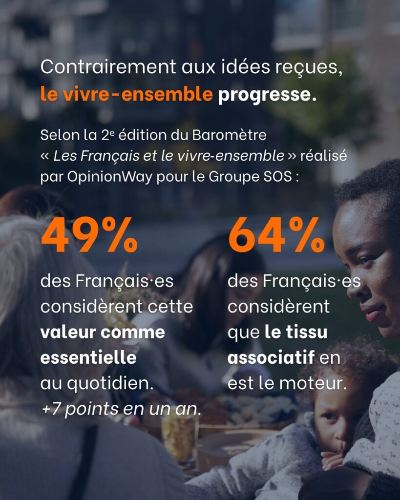À un mois des élections municipales, le vivre-ensemble s’impose comme un thème majeur, selon la 2ᵉ édition du Baromètre « Les Français et le vivre-ensemble », réalisée par OpinionWay pour le Groupe SOS, groupe associatif majeur agissant chaque jour sur le terrain pour le vivre-ensemble, en partenariat avec La Tribune Dimanche et Le Média Positif. 83 % des Français déclarent que ce sujet comptera dans leur choix électoral. 49 % des Français le placent parmi les valeurs essentielles de leur quotidien, et plus de 64 % considèrent que le tissu associatif y contribue.