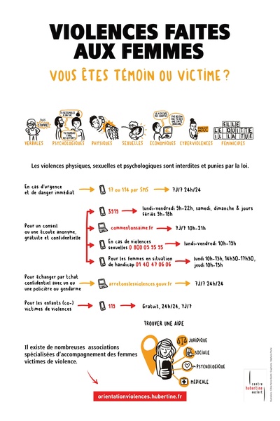 - Mise à disposition des salarié.e.s victimes de violences conjugales d’un guide rappelant notamment les numéros d’urgence, les structures d’accompagnement ;