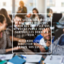 La culture est un vecteur de lien social. Elle favorise l’ouverture aux autres, l’esprit critique et le vivre-ensemble. Fort de cette conviction, GROUPE SOS Culture se fixe pour mission de la rendre innovante, d’ouvrir l’accès à la création et aux œuvres au plus grand nombre et de soutenir l’entrepreneuriat culturel et la créativité sous toutes ses formes. Les activités de GROUPE SOS Culture couvrent notamment l’ingénierie culturelle avec l’agence Le troisième pôle, l’incubation de startups de la culture et des médias avec CREATIS, la fabrication de cinéma/audiovisuel/VR avec Commune Image, les médias avec le Mouvement UP ou encore la restauration de patrimoine avec l’association d’insertion Acta Vista.