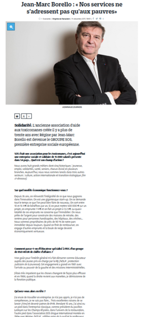 Dans un entretien publié le 11 décembre dans Le Parisien Eco et intitulé "Nos services ne s'adressent pas qu'aux pauvres", Jean-Marc Borello revient sur l'évolution du GROUPE SOS, qu'il préside.