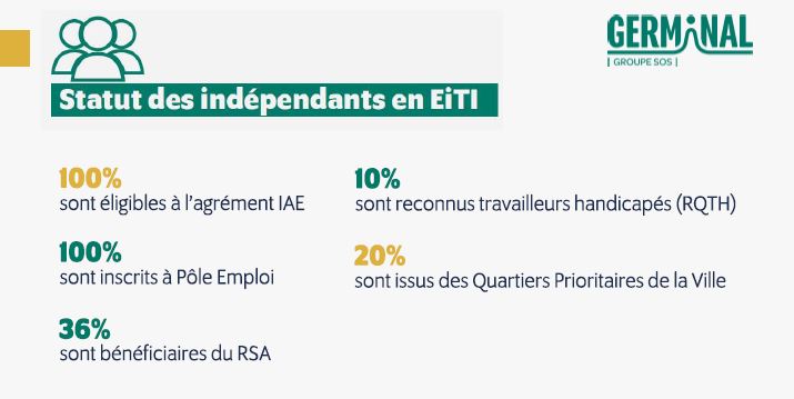 Or, la complexité et l’exigence forte qui entoure la création d’entreprise aujourd’hui en France rend indispensable la mise en place d’un accompagnement global, spécifique et adapté à leur situation. La nécessité de renforcer la réponse aux besoins des travailleurs indépendants accompagnés a conduit Germinal à créer en 2020 des Entreprises d’Insertion par le Travail Indépendant (EITI), une nouvelle forme expérimentale d’Insertion par l’activité économique (IAE), afin d’accompagner, après la création de l’entreprise, les entrepreneur·e·s dans le développement de leur activité pour leur permettre de vivre réellement de leur activité de manière autonome.