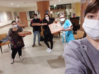 De nombreuses entreprises locales ont offert quotidiennement des croissants, pizzas, repas pour remercier et encourager le personnel :