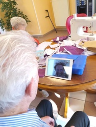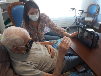 Dès le début du mois de mars, les EHPAD se sont confinés, ayant pour conséquence l’arrêt des visites des proches mais aussi des intervenant.e.s vie sociale et bénévoles. A partir du 24 mars, l’isolement relationnel s’est intensifié avec le confinement des résident.e.s en chambre : la priorité était donc de maintenir malgré tout le lien avec les familles. Grâce aux outils numériques et en particulier aux dons de tablettes de la part de partenaires, des « visio-visites » ont été maintenues et ont permis de lutter contre l’isolement de seniors. De nombreux EHPAD de GROUPE SOS Seniors ont également installé et utilisé Familizz, un média privé et sécurisé pour échanger des messages, photos, cartes postales et vidéos.