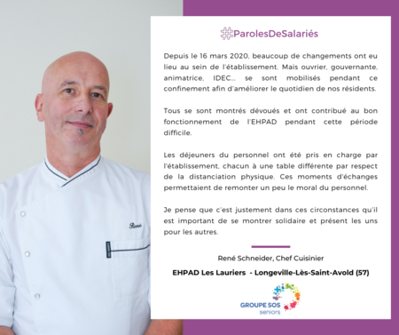 La mobilisation a été exemplaire : malgré les craintes et les contraintes imposées par cette pandémie, salarié.e.s et bénévoles n’ont jamais perdu de vue l’humain, et n’ont cessé de répondre aux besoins et aux exigences des résident.e.s, des premiers jours et ce tant que ce sera nécessaire. Pour valoriser le travail quotidien des équipes de terrain pendant la crise du Covid-19, les équipes support en communication ont mis en place différentes actions, notamment à travers la diffusion sur les réseaux sociaux de témoignages de salarié.e.s avec le hashtag #ParolesDeSalariés. Personnels soignants, mais aussi cuisiniers, services comptabilité, logistiques… Cette campagne a rendu hommage à l’ensemble du personnel engagé au quotidien auprès des personnes âgées accompagnées par nos établissements.