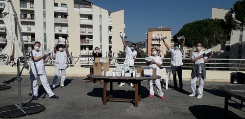 De nombreux masques, gels hydroalcooliques, gants, surblouses, visières imprimées 3D notamment de la part de Castorama et Brico Dépôt, mais également de la part des établissements Crescendo (GROUPE SOS Jeunesse) : ceux-ci étant fermés, leurs équipes se sont mobilisées face à la pénurie de moyens de protection et ont proposé de fournir leurs stocks de masques, gants et gels hydroalcooliques notamment aux professionnel.le.s de GROUPE SOS Seniors. Des tournées de livraison ont été organisées dès le 20 mars, effectuées bénévolement par des salarié.e.s. Le groupe Chantelle mais aussi des couturières de communes aux alentours de certains établissements GROUPE SOS Seniors ont fabriqué des masques de tissus, élément fondamental dont manquaient les équipes des établissements. Pour la réorganisation des repas en chambre, certains établissements n’étaient pas équipés et ont donc reçu le soutien de partenaires locaux tels que les lycées et collèges qui ont prêté du matériel non utilisé avec la fermeture des établissements scolaires (grilles, plateaux…etc.).
