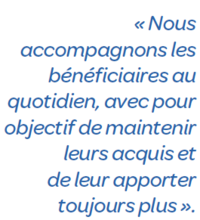 « Nous avons des liens avec tous les établissements du Groupe présents dans la région. Nous nous appelons et nous échangeons sur nos pratiques. Même si nous n’intervenons pas dans les mêmes secteurs, nous avons tous des problématiques communes. Nous travaillons beaucoup avec le Foyer d’accueil médicalisé (FAM) Le Haut d’Antibes. L’année dernière, nous avons organisé une journée de rencontres entre l’équipe du Foyer de vie des Guérins et celle du FAM Le Haut d’Antibes: tous ont pu échanger sur leurs pratiques. Pour moi la synergie est primordiale, tant avec les acteurs internes qu’externes au Groupe. Elle nous permet d’évoluer constamment. »