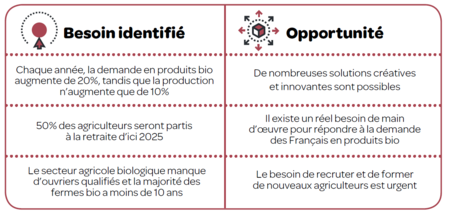 Le modèle agricole industriel se heurte à de nombreuses limites et la demande de produits issus de l’agroécologie est en pleine expansion. Un nouveau modèle de développement agricole se met progressivement en place, basé sur l’agroécologie et la permaculture : des pratiques agricoles innovantes qui ont des impacts positifs dans de nombreux domaines (santé, emploi, rendements, etc.). Pourtant, la main d’oeuvre qualifiée manque dans le secteur agricole en France. Il y a donc de nombreux emplois à pourvoir et beaucoup de projets à développer.