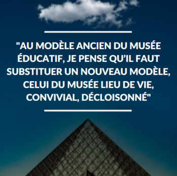 Au modèle ancien du musée éducatif, je pense qu’il faut substituer un nouveau modèle, celui du musée lieu de vie, convivial, décloisonné, accueillant aussi bien une culture érudite que populaire, pourquoi pas, même, le musée festif".