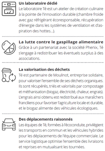 Professionnel de l’événementiel responsable, Té Créateur d'Instants se distingue par ses forts engagements environnementaux. Ses équipes veillent à la meilleure maîtrise possible de toute la chaîne de production d'un événement et à la réduction de son empreinte environnementale. Un engagement qui correspond à une demande croissante des clients.
