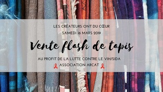 En attendant la braderie de juin, retrouvez l'association Arcat et ses bénévoles le samedi 16 mars de 10h à 18h pour une vente flash de plus de 200 tapis : déstockage de Kilims anciens, Proche Orient, Caucase et Asie Centrale, etc… Retrouvez également des tapis contemporains de la marque EDITO. Les bénéfices de la vente permettent à Arcat et Le Kiosque Infos sida & Toxicomanie / Checkpoint Paris de pérenniser leurs programmes en faveur des personnes vivant avec le VIH/sida.