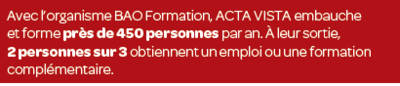 ACTA VISTA est une association spécialisée dans l’insertion et la formation professionnelle menées sur des chantiers de restauration de monuments historiques. Ces chantiers sont dédiés aux personnes les plus éloignées de l’emploi, pour leur permettre d’une part, d’accéder à une qualification dans les métiers du bâtiment et du patrimoine bâti ancien, et d’autre part d’être accompagnées vers l’emploi durable. En apprenant un métier sur des édifices prestigieux, les salariés d’ACTA VISTA redonnent vie à des lieux d’exception et se bâtissent un projet porteur d’avenir. Quelques exemples de chantiers : Fort d’Entrecastraux (Bouches-du-Rhône), Château de la Morinière (Loir-et-Cher), Chapelle de Riboux (Var)…