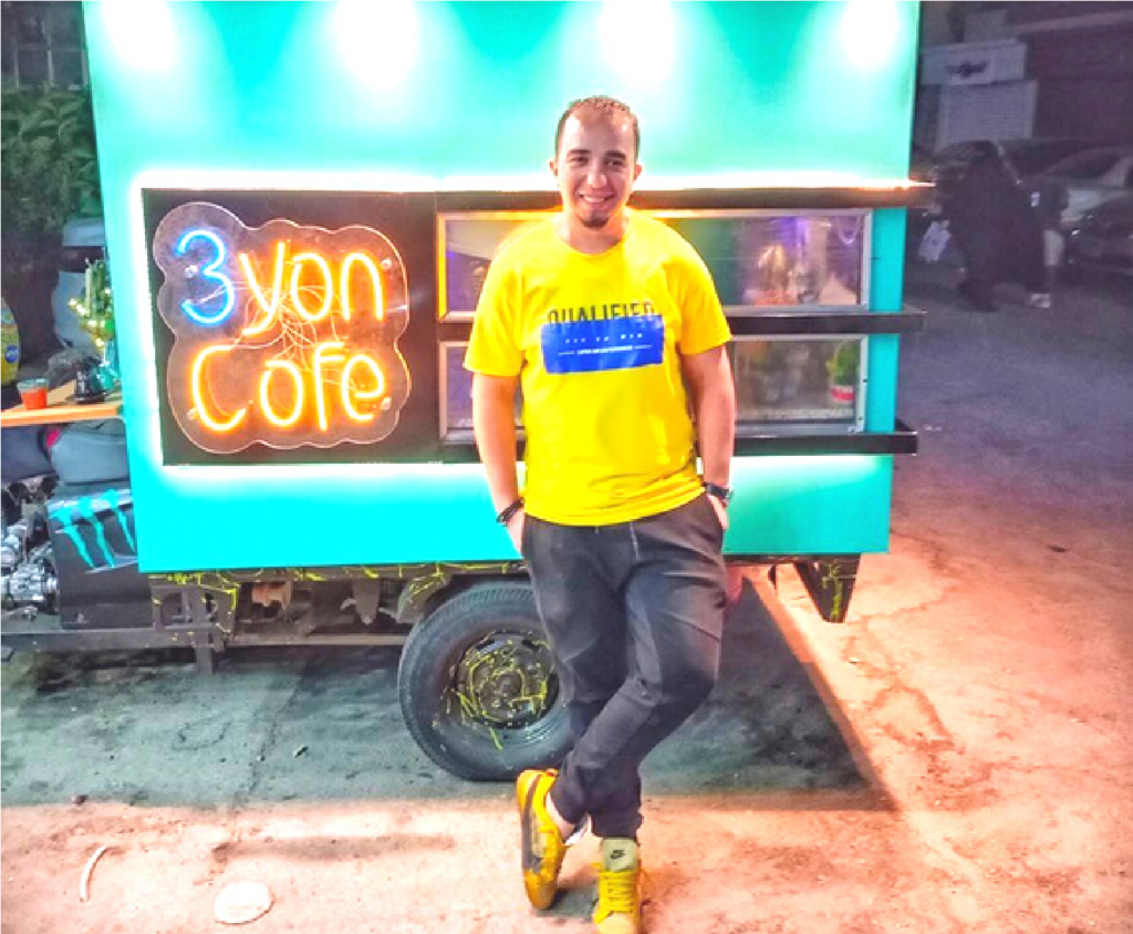 Ahmed Aiyoun is a young man from Minia who decided to become self-employed through an innovative idea. He established a micro-coffee shop on an old bicycle, serving a variety of coffees and other hand-prepared beverages.