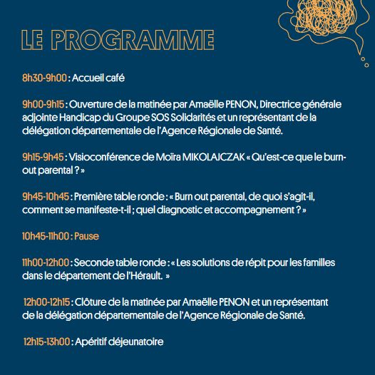 - 2 tables rondes pour parler des manifestations, du diagnostic et de l’accompagnement du burnout parental, mais également des solutions de répit disponibles pour les familles dans Département de l’Hérault.