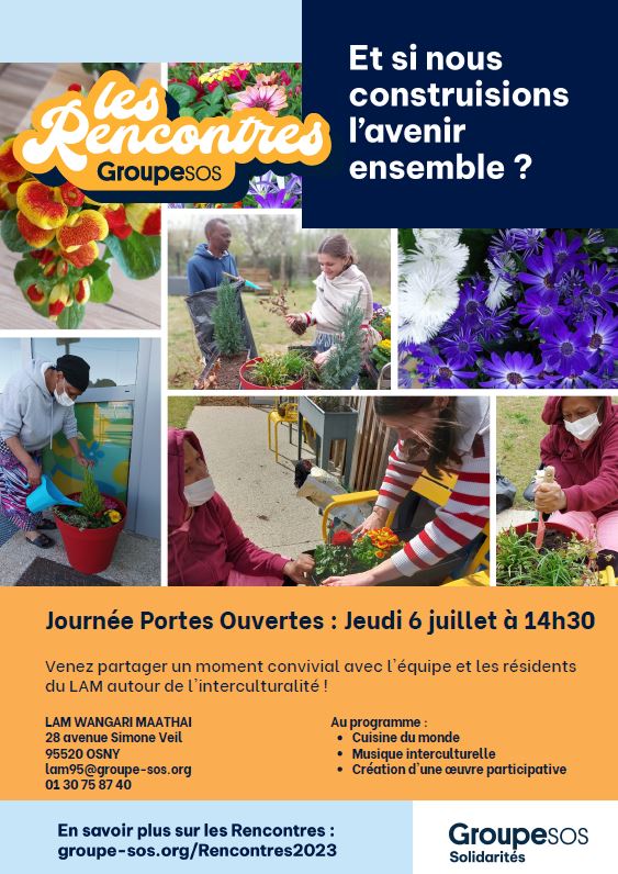 Cet événement s’inscrit dans le cadre des Rencontres avec le Groupe SOS. Partout en France et à l’international d’avril à juillet, des associations et établissements du Groupe SOS vous ouvrent leurs portes.