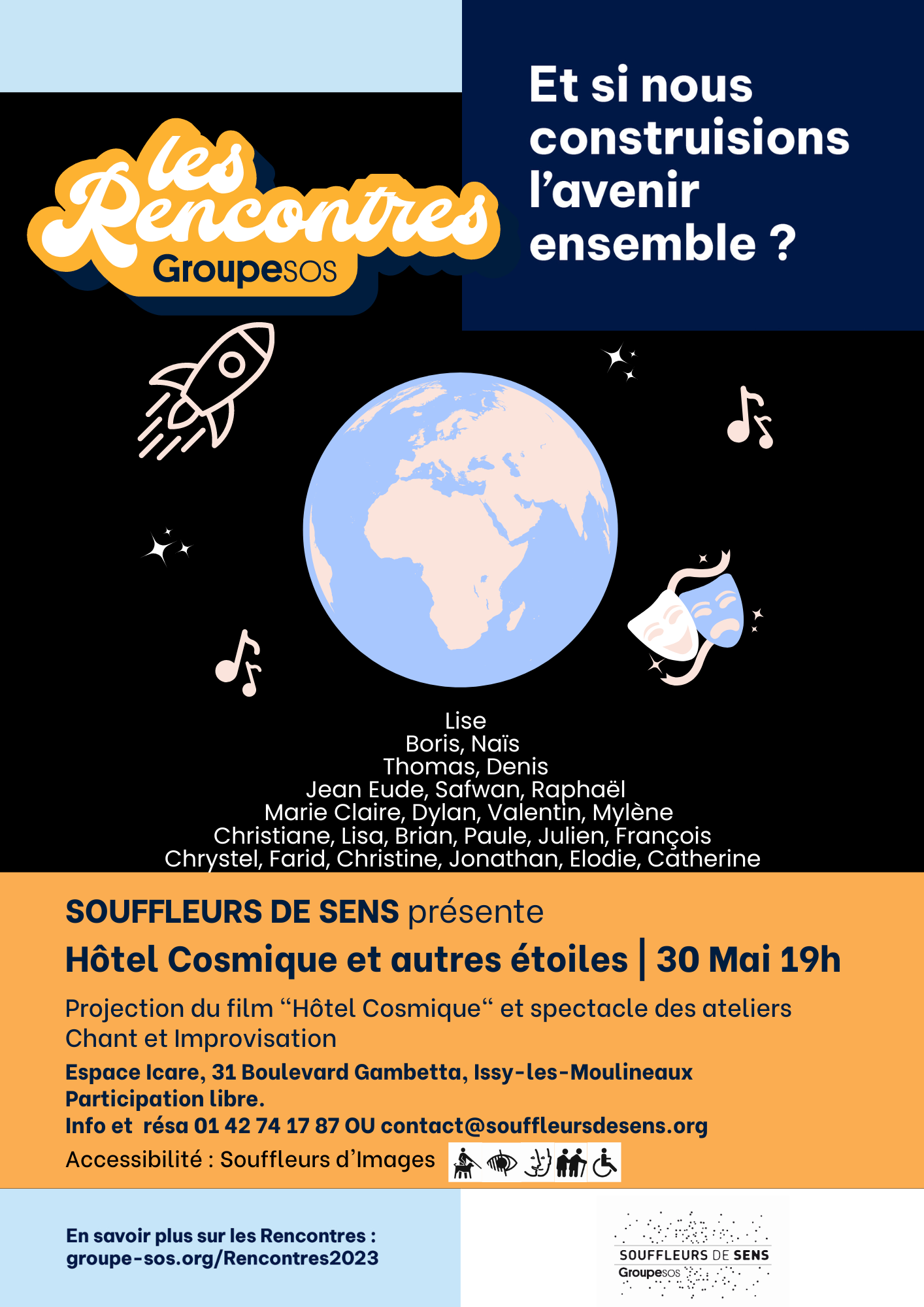L’association SOUFFLEURS DE SENS vous invite à assister à la projection du film « Hôtel Cosmique » et au spectacle des ateliers Chant et Improvisation le 30 Mai à 19h.