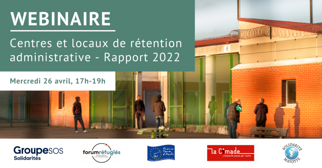 Fortes de leur travail quotidien d’accompagnement juridique des personnes étrangères dans les centres de rétention administrative (CRA), cinq associations (Forum réfugiés, France terre d’asile, le Groupe SOS Solidarités, La Cimade et Solidarité Mayotte) sont en première ligne pour constater et rendre compte des situations dans ces lieux de privation de liberté. A l’occasion de la sortie du rapport sur l’année 2022, ces associations organisent un webinaire afin de présenter leurs observations et analyses.