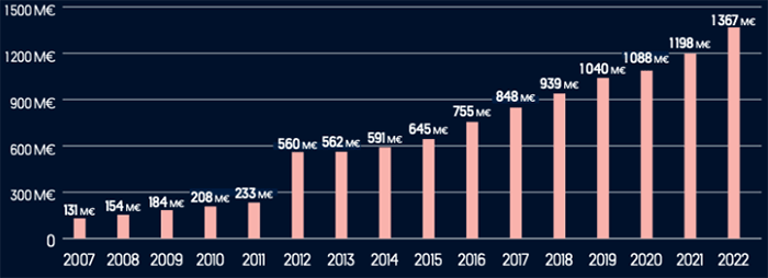 - Financement de levées de fonds entre 200 k€ à 2 M€ pour des tickets d’investissement en capital entre 50 et 300 k€ (en 2022)
