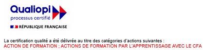 La certification QUALIOPI a été délivrée par Afnor Certification à l’IFAS de Saint-Avold le 26 août 2021 et renouvelée le 30 janvier 2023 au titre de la catégorie d’actions suivantes : actions de formation, actions de formation par l’apprentissage avec le CFA.